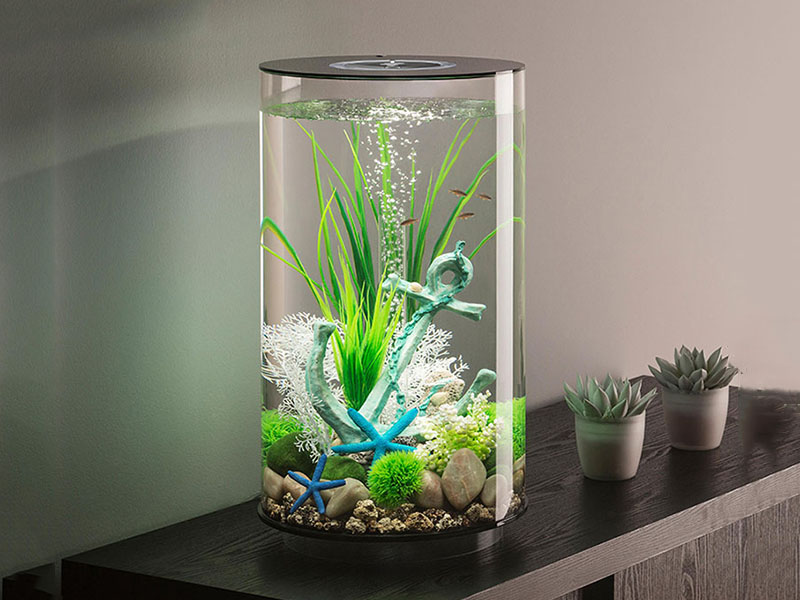 在空間利用方面,圓柱型水族箱相較于傳統的方形水族箱更加節省空間。它的占地面積小,但內部空間卻相對較大,可以容納更多的魚兒和水生植物。